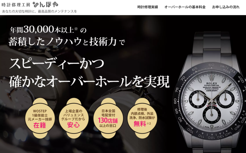 こちらでは、2017年から年間17,000本以上の時計修理実績を抱える「時計修理工房なんぼや」の評判や特徴から料金等、そのすべてをわかりやすくまとめたページとなっています。
